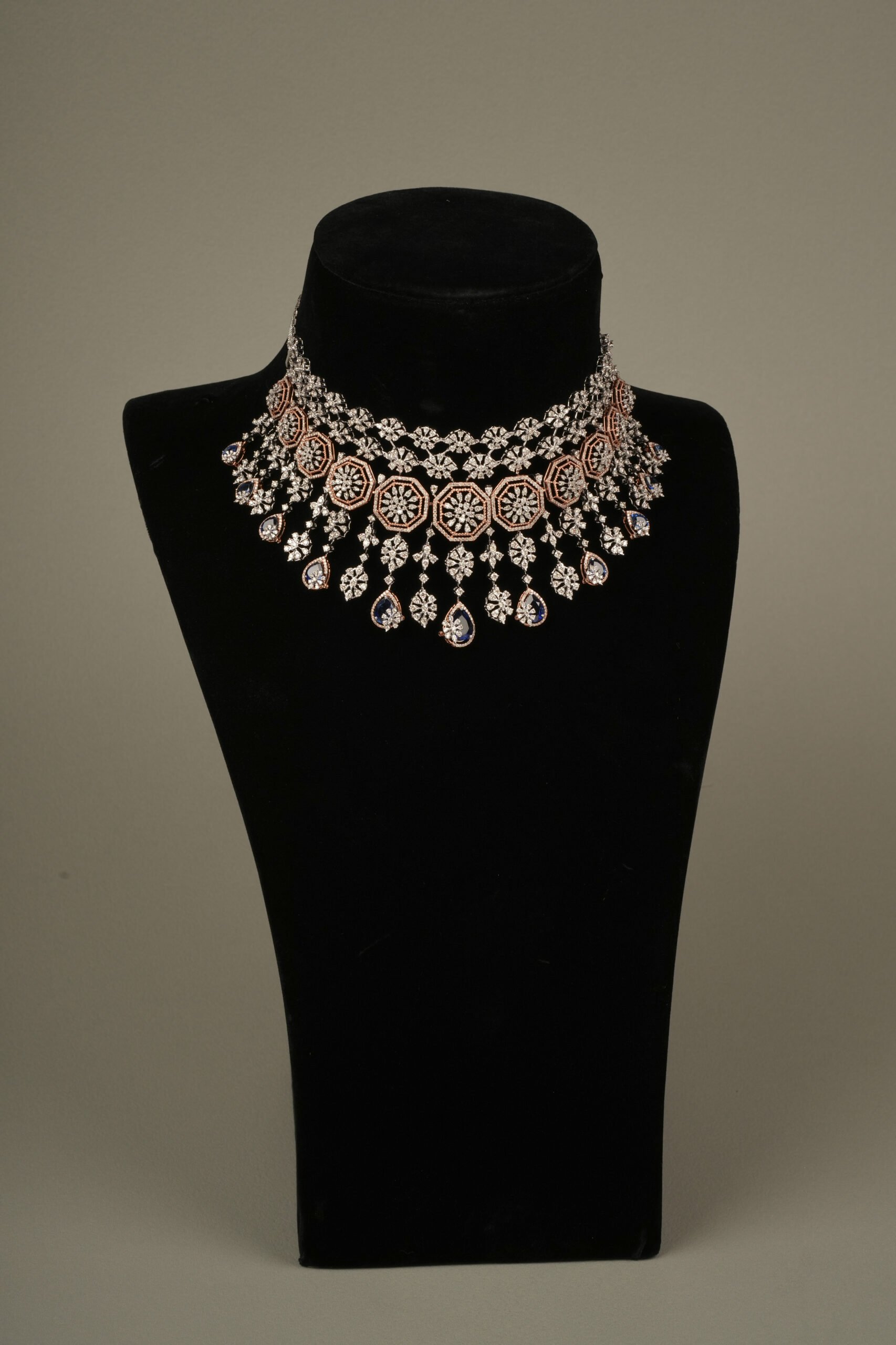 Perfect for weddings, receptions, or festive celebrations, the set includes matching earrings to complete your outfit with elegance. Its balanced mix of sparkle and style makes it ideal for both modern and traditional wear. If you’re looking for jewellery that truly stands out, this choker set is the one to choose.